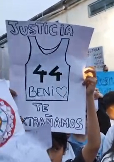 Frente al club, una tía de Benicio leyó un comunicado elaborado por los padres (quienes no estuvieron presentes): “Nos reunimos para pedir justicia por Benicio. Para que su muerte no quede impune. Para que se asuman las responsabilidades que correspondan y, sobre todo, para que nunca más vuelva a ocurrir una tragedia evitable.”