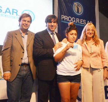 Durante el encuentro, se extendieron certificados del créditos de Procrear, tarjetas Argenta y banderas de ceremonia a centros de jubilados de la zona y entregaron las primeras tarjetas de débito a los jóvenes que se inscribieron en el programa Progresar.
