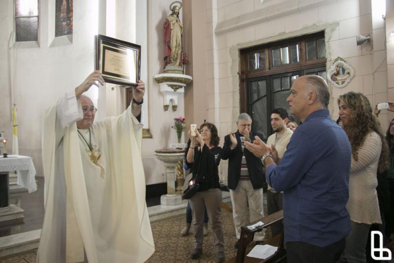 La distinción, que tuvo lugar en medio de la tradicional misa dominical de Acción de Gracias, arrancó encendidos aplausos de toda la comunidad feligresa que asistió a celebrar los 25 años del padre frente a la Parroquia San Juan Bautista de Valentín Alsina.