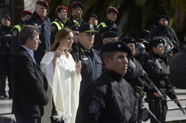 Acompañada por el ministro de Seguridad, Cristian Ritondo, y por el jefe de la Policía de la Provincia, Fabián Perroni, la gobernadora María Eugenia Vidal presentó un nuevo operativo de patrullaje en los 190 puntos con mayor índice delictivo del distrito y la flamante Unidad Táctica de Operaciones Inmediatas (UTOI), destinada a dar respuesta rápida mediante maniobras urgentes de acción.